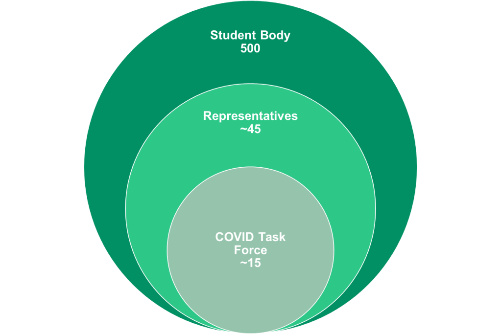 Missing any of the components above will be counterproductive and might cause people to make their conclusions. In addition, a clear communication channel is required. For our current case, the school has a task force made up by selected employees and the student body has a task force made up by elected representatives.
