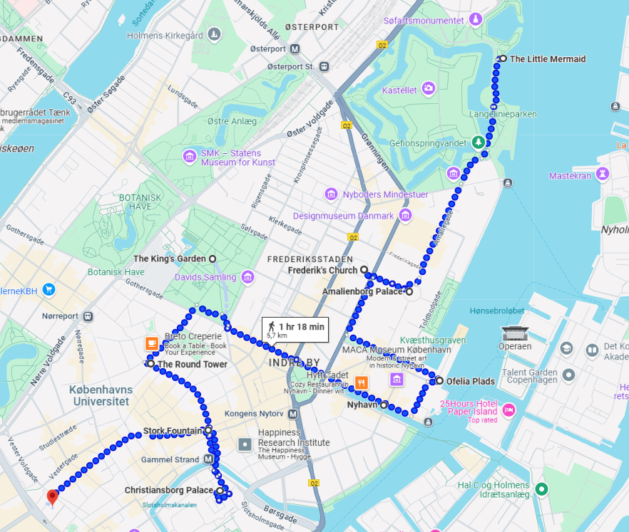 If you only have 1 day in Copenhagen, this is likely a good route. Checkout the map here.