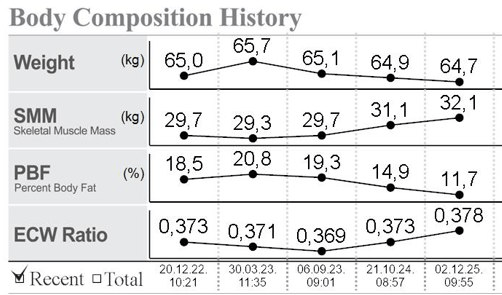 So what’s the result? Let’s start with the physical numbers, I did an InBody scan with the exact same machine in the exact same place, with similar condition, i.e., no food and drink for the last 10 hours or so. Between October 2024 to December 2025, my body fat went from 14.9% to 11.7% in a year, with overall increase in muscle mass. This was shocking as I had struggled before to reduce any body fat percentage! And being honest, I was ecstatic to see the effort paid off.